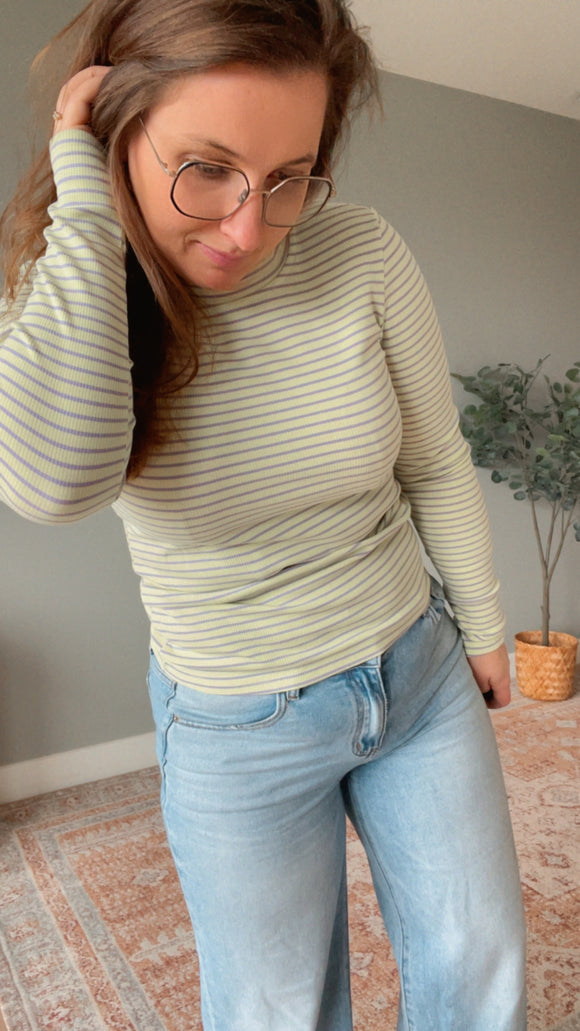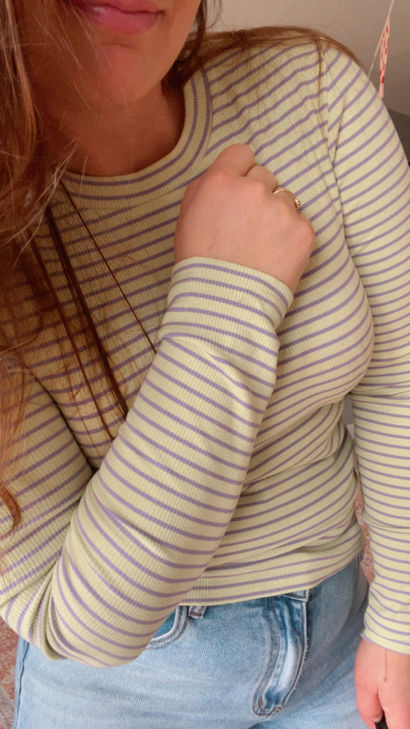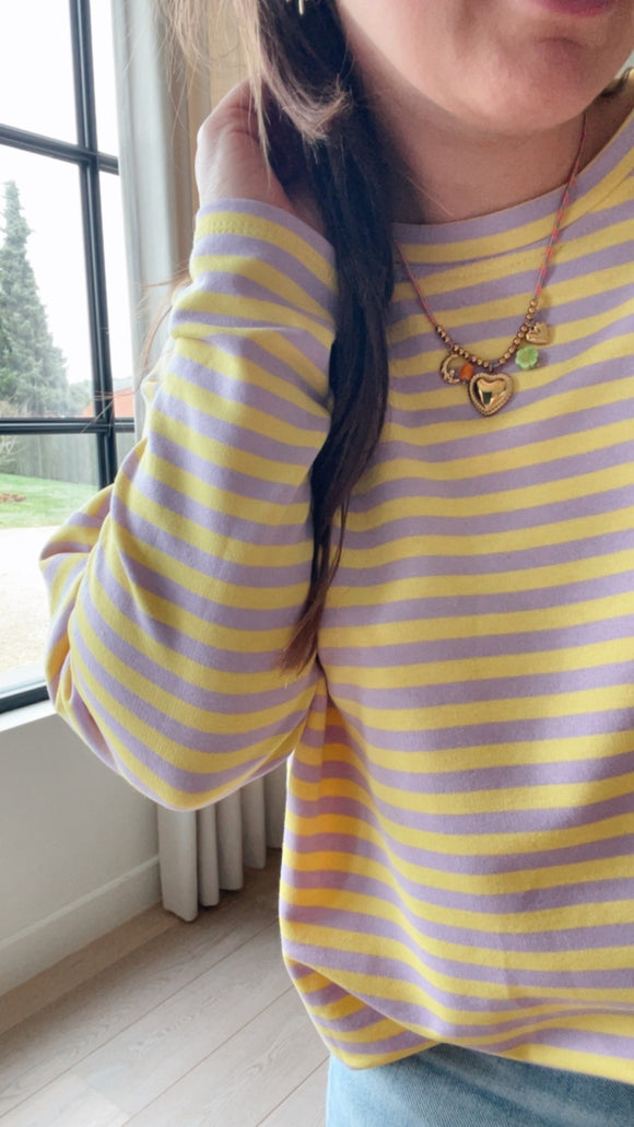 Fannie Stripe longsleeve geel/lila dames