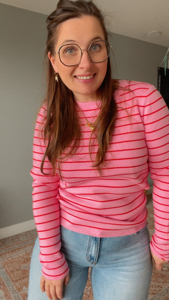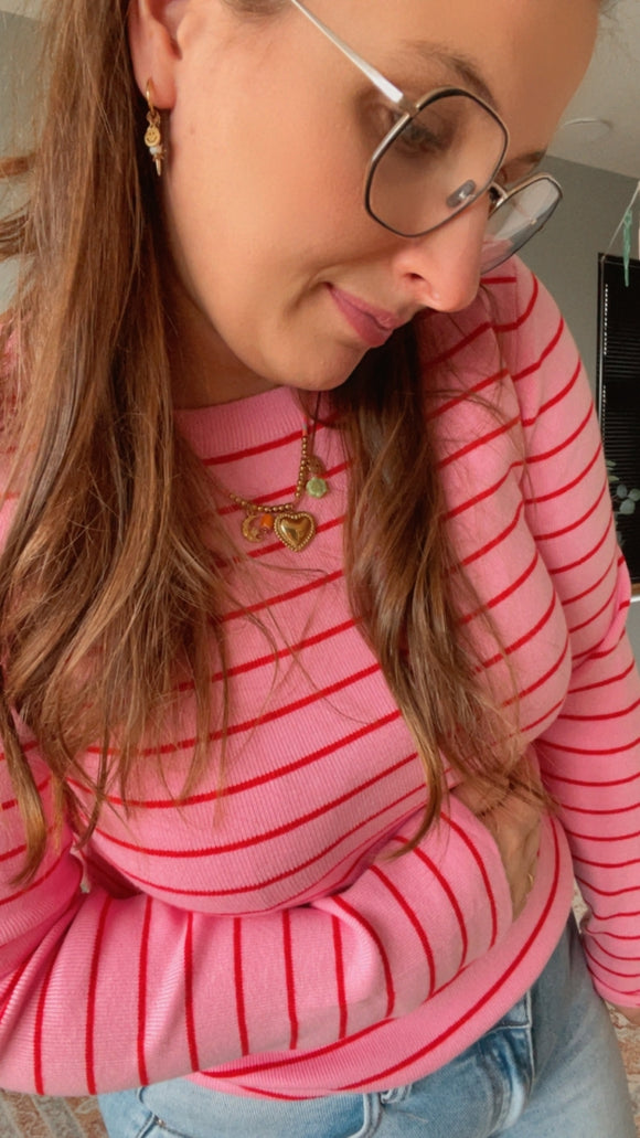 Lot oversized stripe longsleeve roze/ecru dames