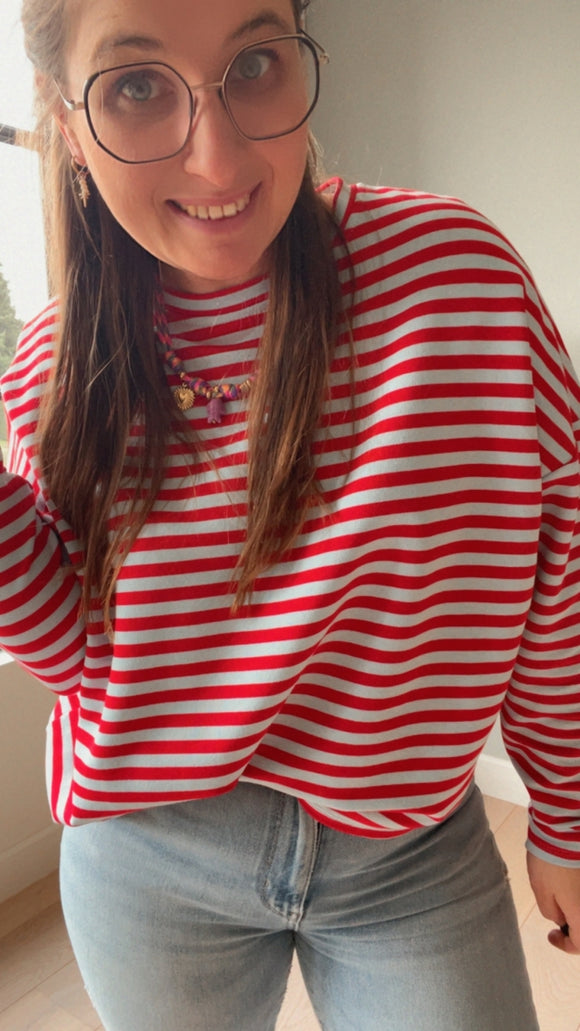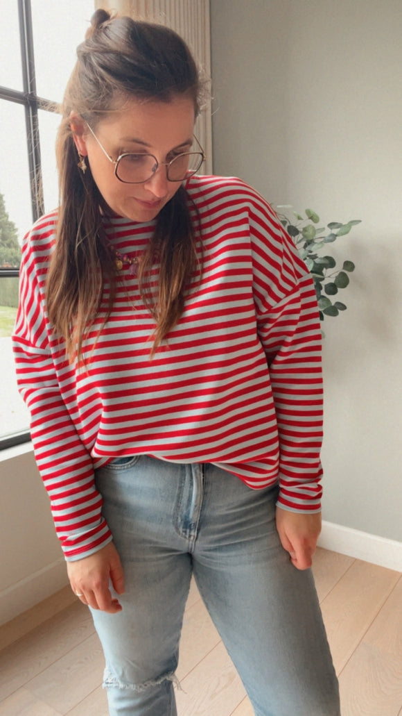 Fannie stripe longsleeve blauw/rood dames