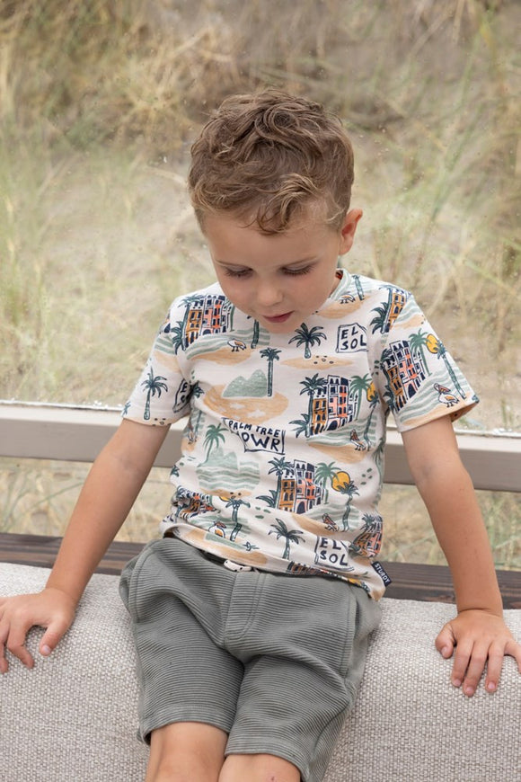 Sturdy jongens hemdje corduroy bruin waves and whales