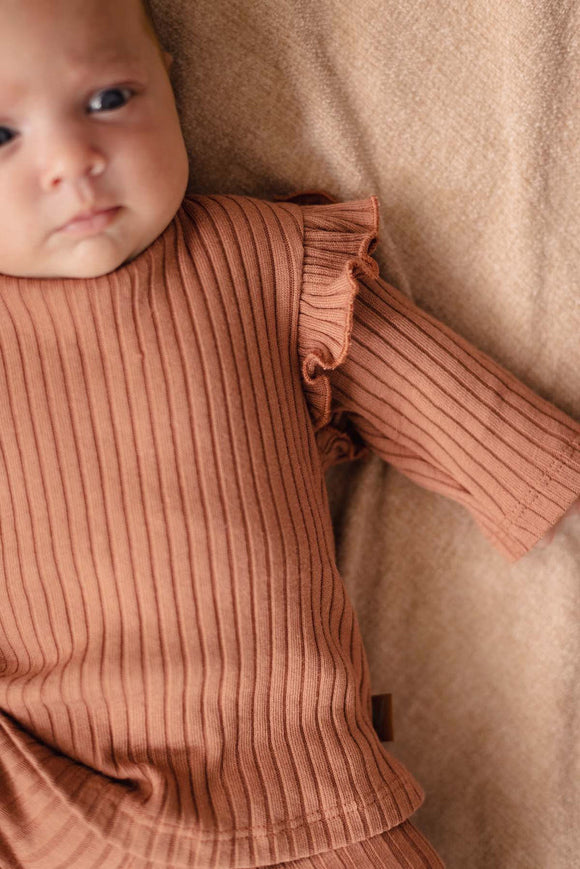 T-shirt Rib Ruffle Camel - Sproet & Sprout