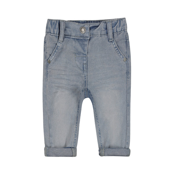 Geef de garderobe van je kleintje een trendy update met deze Dirkje jeans in lichtblauw. Deze loose fit jeans zijn gemaakt van een zachte denim met een fijne portie stretch, wat zorgt voor optimaal comfort en bewegingsvrijheid. Het jongens broekje heeft een verstelbare taille en is voorzien van een schuifknoop, zodat het perfect kan worden afgesteld voor een ideale pasvorm. Deze veelzijdige jeans zijn ideaal voor dagelijks gebruik en bieden een casual, maar stijlvolle uitstraling voor elke gelegenheid.