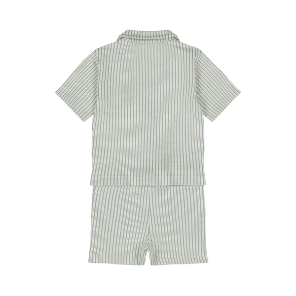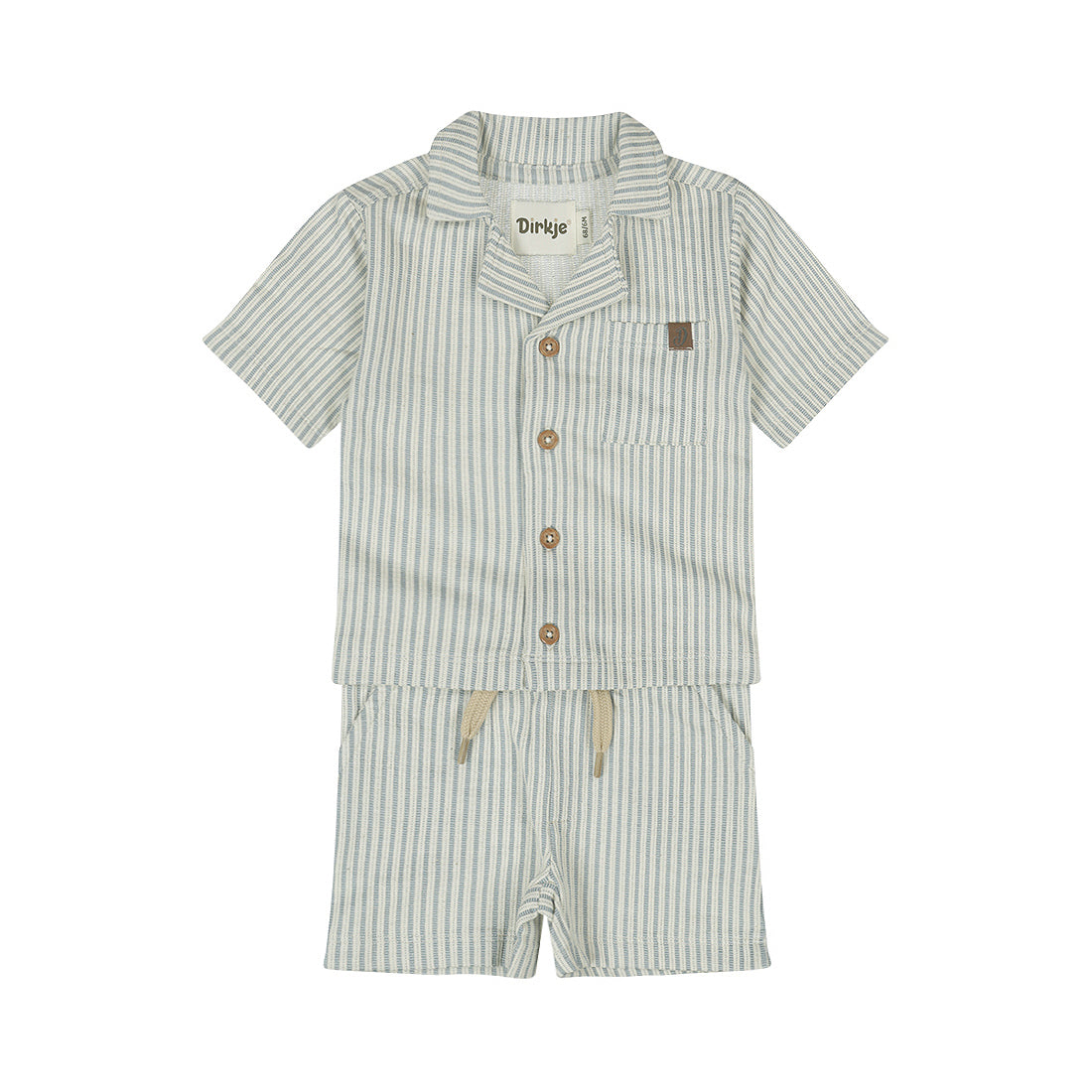 Leuke set voor jongens van het merk Dirkje met een fijn blauw streepje. De set bestaat uit een t-shirt en een short. Verkrijgbaar vanaf maat 80 tem 6 Jaar en is gemaakt van 65% katoen - 33% Polyester - 2% Elastane.