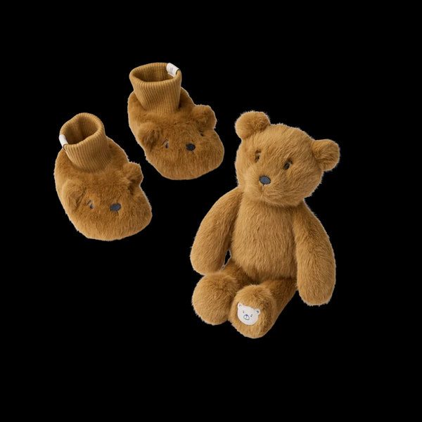 Een zachte en knuffelbare cadeauset met een kleine teddybeer en bijpassende pantoffels. Gemaakt van superzacht GRS-gerecycled pluche materiaal. De pantoffels hebben omvouwbare ribboorden en antislipnoppen op de zool. Pasvorm valt normaal. Een ideaal cadeau, geleverd in een LIEWOOD-geschenkdoos.