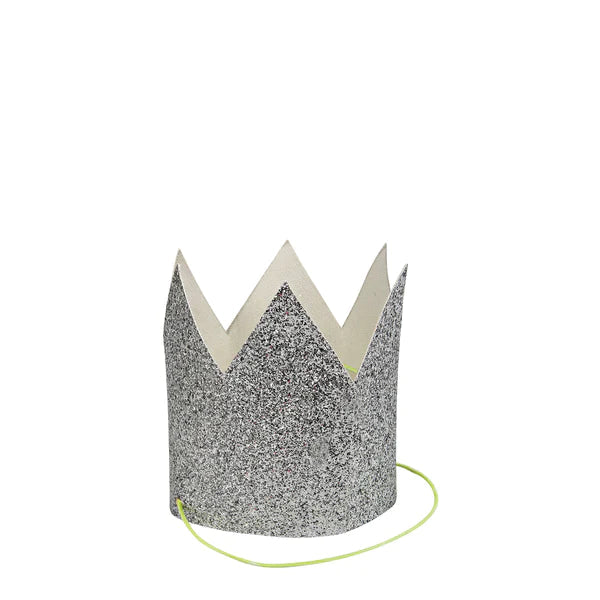 Mini silver glittered crowns ( 8 Stuks ) - MeriMeri