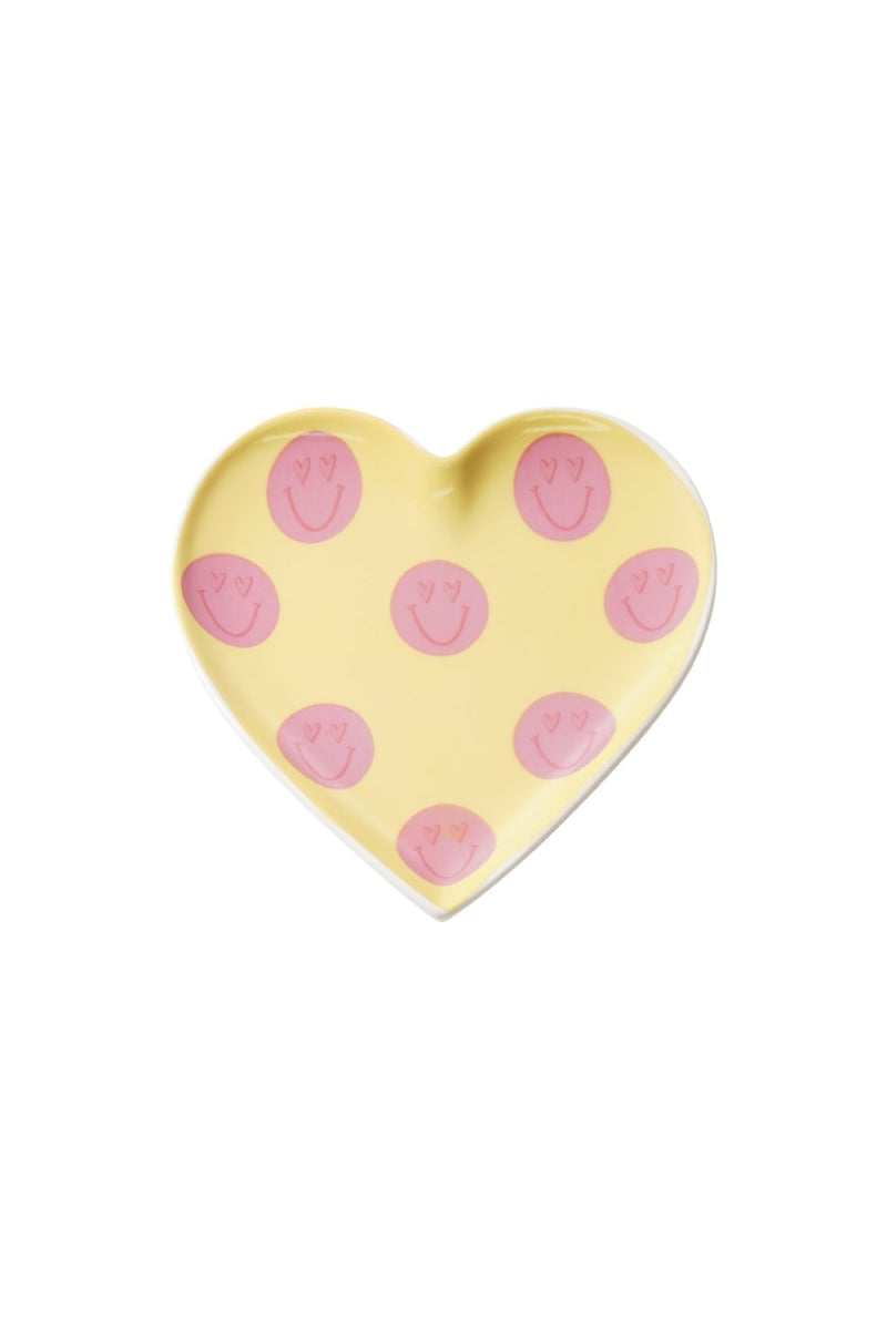 Sieraden schaaltje in de vorm van een hartje met roze smiley's. Ideaal om te geven als Kado in combinatie met mooie oorbellen .