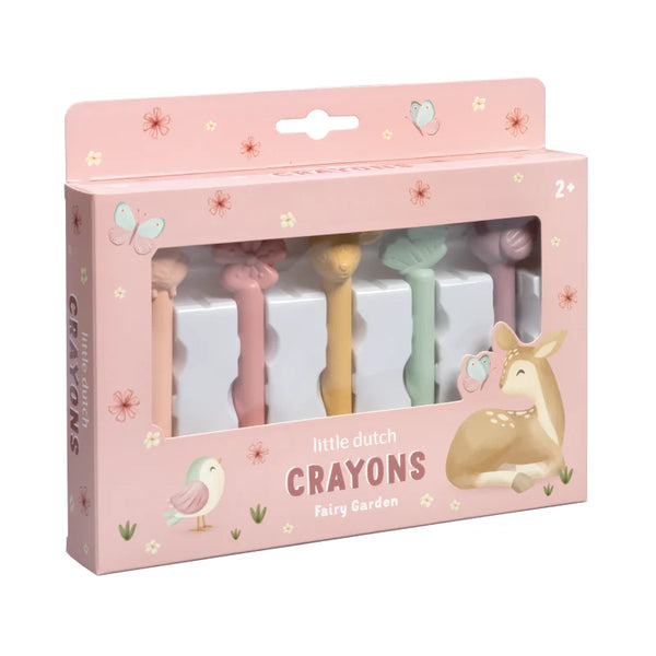 Kleuren wordt een sprookje met de waskrijtjes van Little Dutch. Deze lieve set uit de Fairy Garden collectie bevat vijf zachte pasteltinten in herkenbare vormen zoals een bloemetje, vlindertje, vogeltje, egeltje en hertje. Elk krijtje nodigt uit tot tekenen, fantaseren en verwonderen.