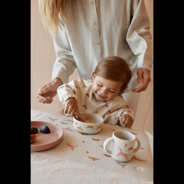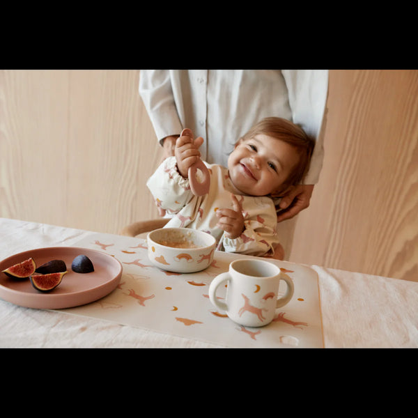 Al onze populairste serviesgoed — verzameld in één handige set. De Vivi-serviesset is gemaakt van duurzaam, hoogwaardig siliconen en is zowel onbreekbaar als vaatwasmachinebestendig. Het bestaat uit een kopje, kom, bord en lepel, zodat je kleintje klaar is voor zijn foodie-avonturen.
