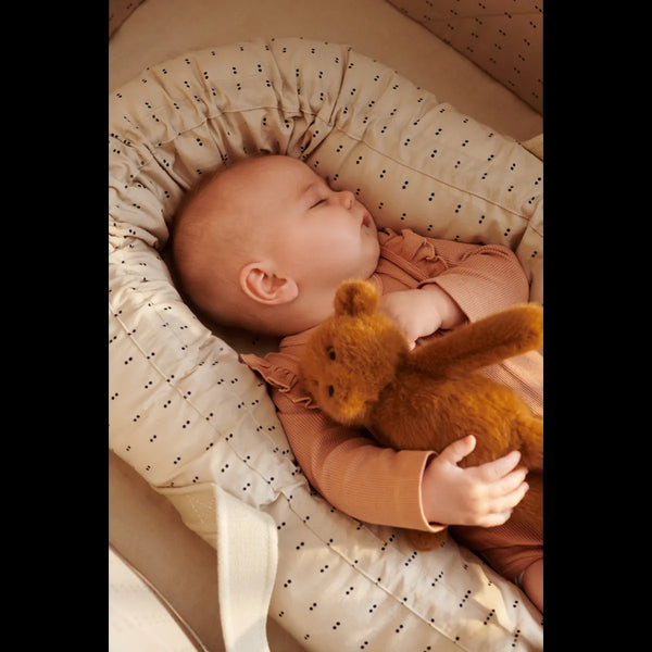 Kleinere pluche teddybeer, gemaakt van ultrazacht GRS-gecertificeerd gerecycled polyester. Een levenslange knuffelvriend voor baby's en peuters met subtiel berenborduursel op de voet. Ideaal om cadeau te doen