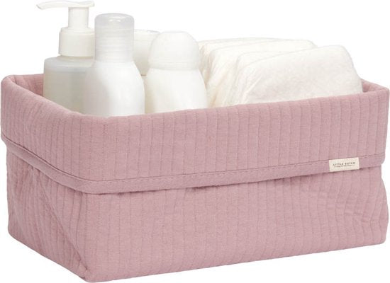 Geen rondslingerende luiers, tubes en flesjes meer: met dit grote commodemandje van Little Dutch blijft de commode mooi opgeruimd en georganiseerd! De commodemand van Little Dutch is prachtig afgewerkt en biedt een opbergplek aan alle producten die je dagelijks nodig hebt om je baby te verzorgen. Een mooie accessoire voor in de kinderkamer. Deze uit de Pure Mauve collectie bevat een prachtige paarse kleur.