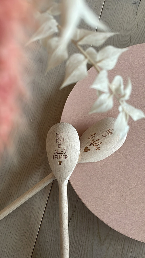 Houten lepel met tekst 'met jou is alles leuker'