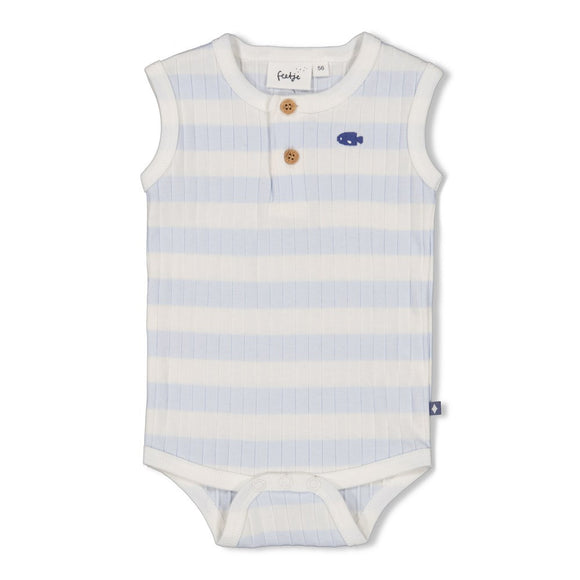 Feetje baby romper rib met streep blue ocean