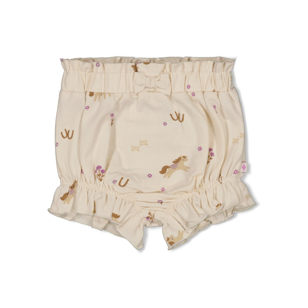 Cute en zacht! Dat is deze bloomer van feetje uit de nieuwe collectie flower ranch . Deze bloomer is gemaakt van zacht katoen en heeft een leuke fijne paardjes print wat de bloomer extra speels maakt. Combineer deze bloomer met de crochet of violet t-shirt uit de flower ranch collectie. Verkrijgbaar vanaf maatje 56 tem 86