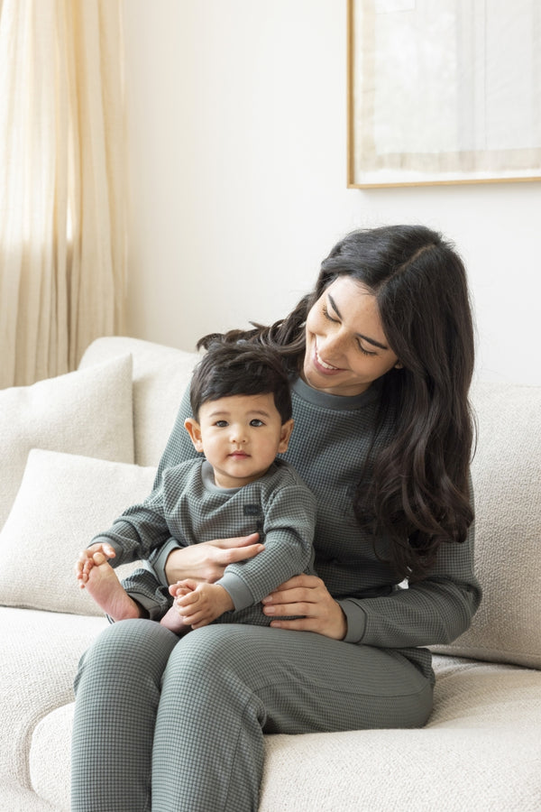De limited wafel pyjama's van feetje zijn er weer . Nu verkrijgbaar in de kleur zeegroen & berry en ook voor ouders . De pyjama's zijn limited dus OP = OP . Ondertussen Kent iedereen de pyjama's van feetje wel en hebben ze een aangename pasvorm en zijn ze gemaakt van topkwaliteit .