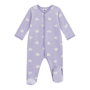 Petit bateau fluwelen babypyjama met hartjes print lila