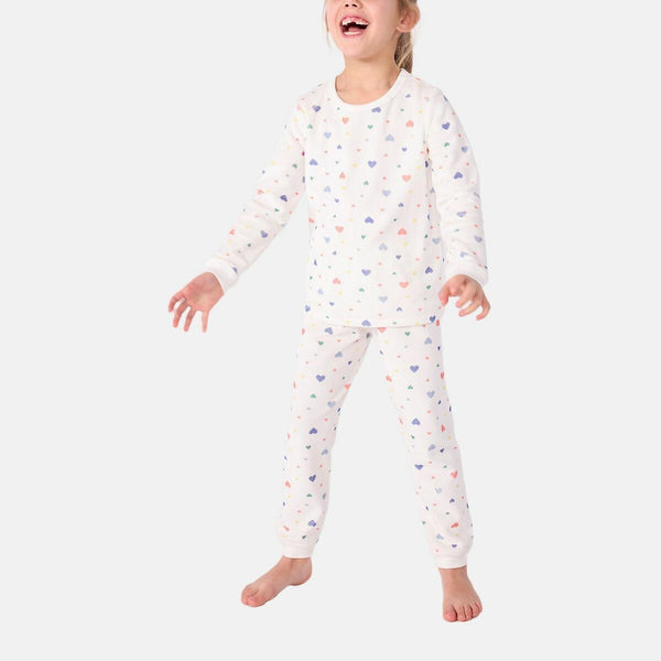 - Pyjama van zacht velours met meerkleurige hartjesprint, voor een vleugje fantasie!