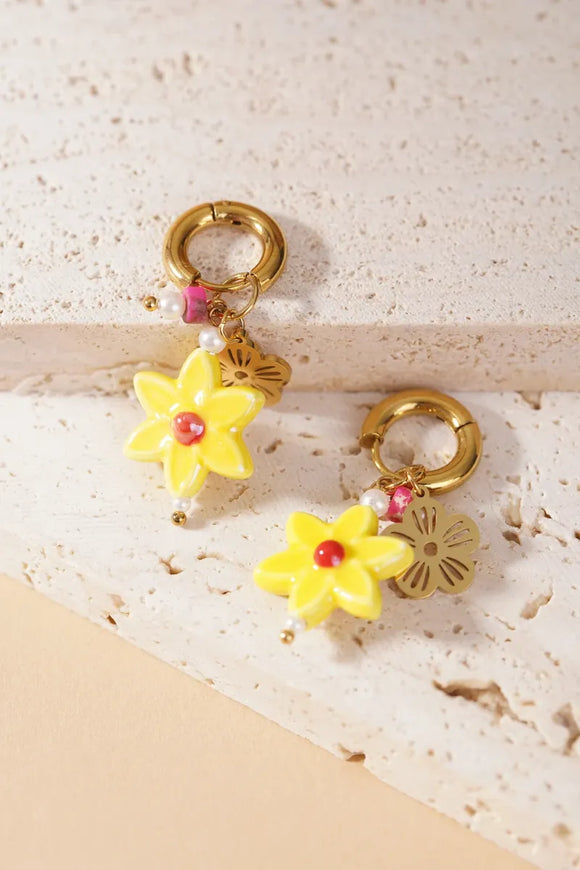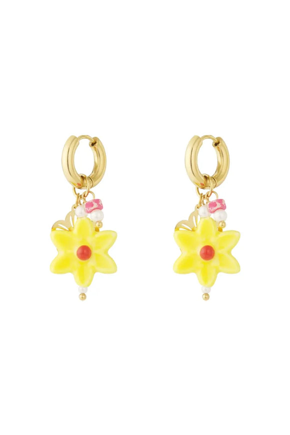 Maan oorbellen met roos kraaltje RVS goud stainless steel