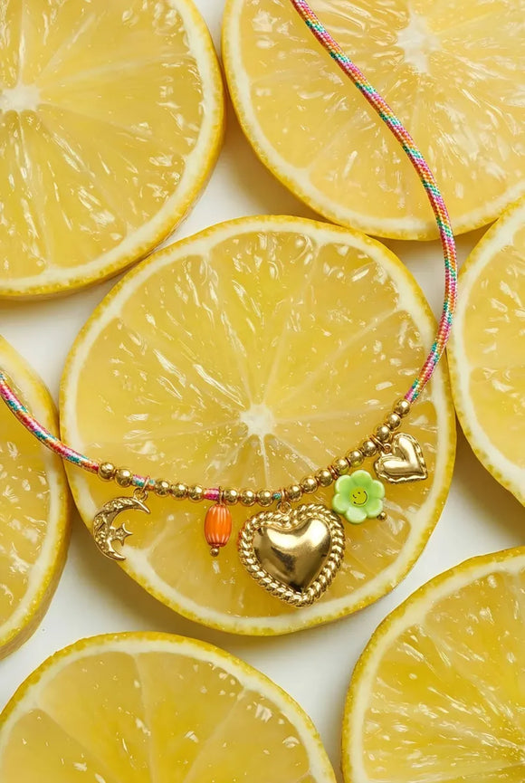 Ketting met groene bedeltjes (zeester, hartjes, schelp) - goud