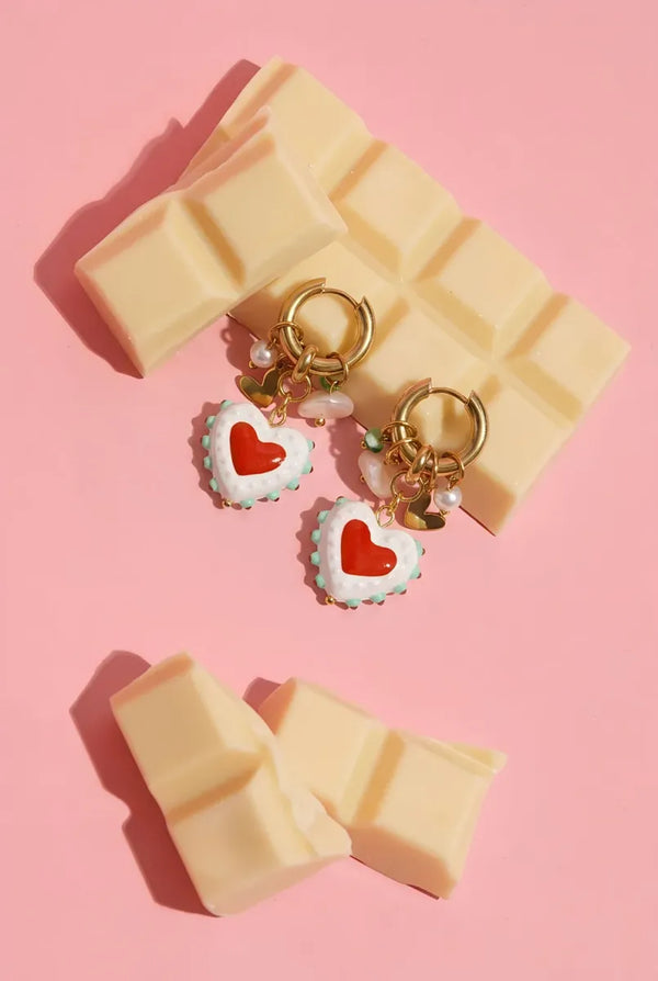 Hartjes bedel oorbellen met kralen . De oorbellen zijn gemaakt van stainless steel wat betekent dat het sieraad 100% waterproof is.