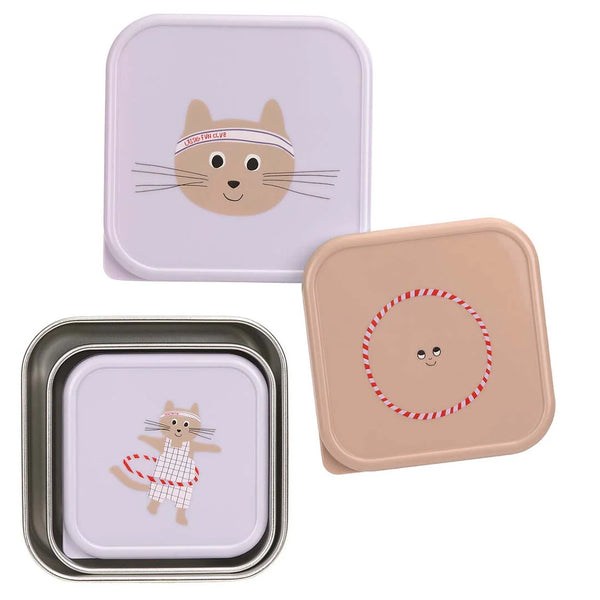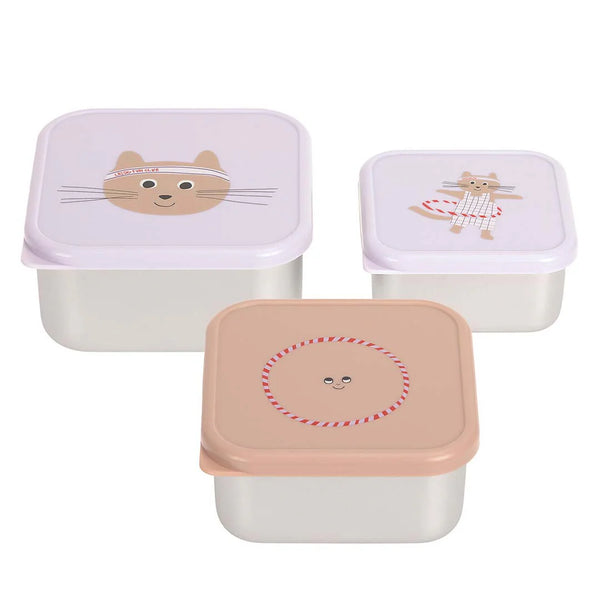 Lassig Roestvrije Snackbox 3 Delige Set tiny team cat
