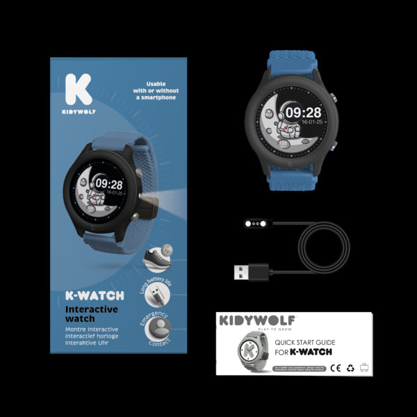 K-WATCH, het evolutieve horloge voor kinderen vanaf 8 jaar. Modern design, 10 sportmodi, wekker, timer, chronometer en zelfs een ingebouwde zaklamp: alles om actief te blijven, zich te organiseren en zelfstandiger te worden.Zonder spelletjes, zonder gps en met of zonder verbinding met een telefoon, begeleidt deze horloge kinderen in hun eigen tempo, zonder afleiding of digitale risico's. Een nuttig, veilig en slimme polshorloge dat met hen meegroeit.