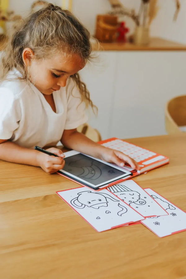 Geef je kind een grenzeloze tekenervaring met KIDYDRAW-MINI, een tekenboek met LCD-scherm met 30 overdraagbare illustraties en 5 unieke thema's. Ideaal om creativiteit en zelfstandigheid te stimuleren en past gemakkelijk in elke tas, zodat je altijd en overal tekeningen kunt maken. Een handig elastiek houdt het geheel dicht, net als een echt notitieboek, en voorkomt dat het karton van zijn plaats glijdt.