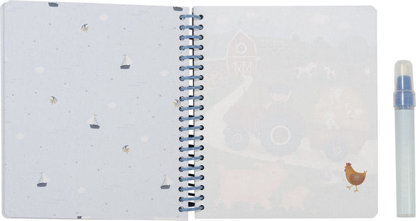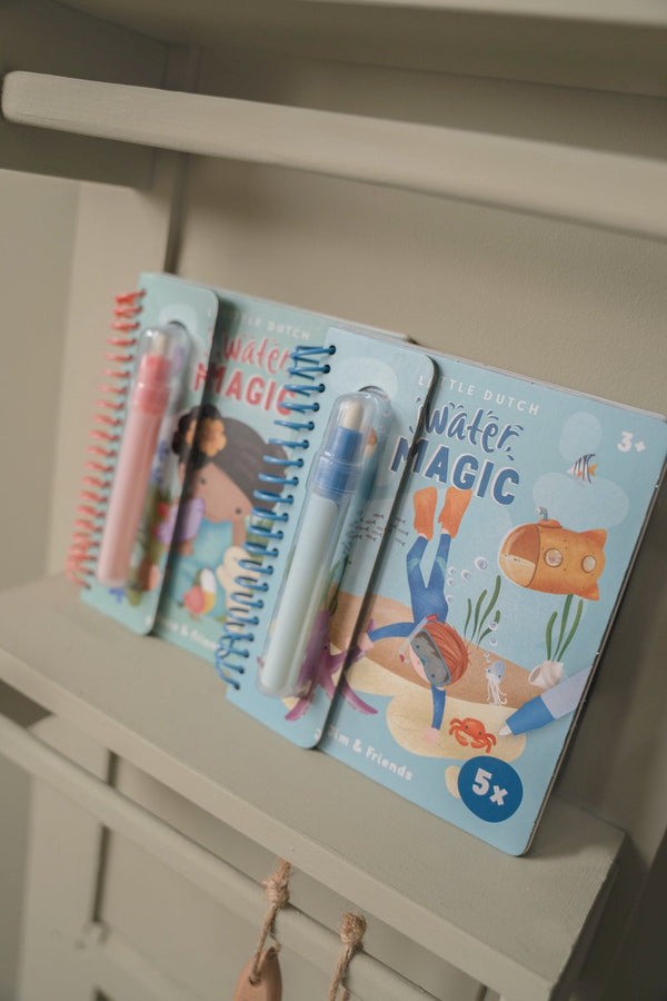 Wauw, zo wordt tekenen magisch! Met dit Little Dutch Jim & Friends watertekenboek maak jij de mooiste creaties . Op elke pagina is alvast een stukje ingekleurd zodat je een hint hebt van de tekening die er verborgen zit. Vul de bijgeleverde speciale pen met water en begin met tekenen. Wanneer water op het karton terecht komt verschijnen er de mooiste, vrolijke tekeningen. Als het papier opdroogt kun je de tekening weer opnieuw maken, waardoor je keer op keer plezier hebt. Het boek is gemaakt van stevig karton met herkenbare Little Dutch designs en kleuren en heeft een handige ringband. De ideale activiteit voor thuis en onderweg!
