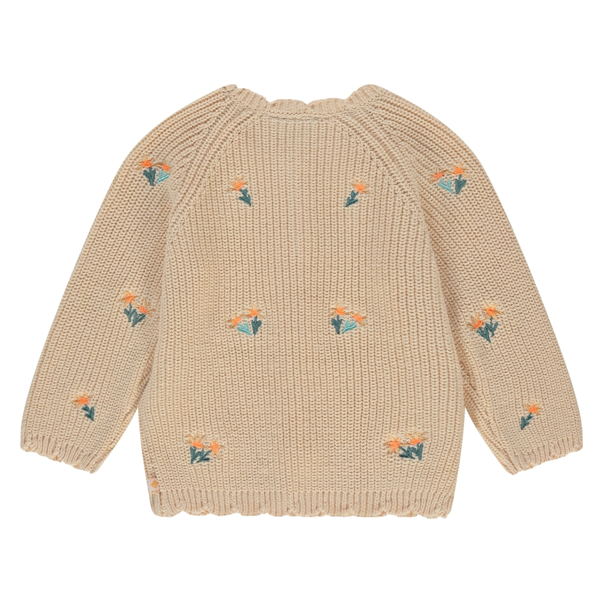 Fijn gebreide cardigan van babyface met een speelse bloemenprint en kijk ook zeker naar die mooie afgewerking . De cardigan is leuk te combineren met de munt shirt of het munt kleedje van babyface. Verkrijgbaar van maat 68 tem 92 .