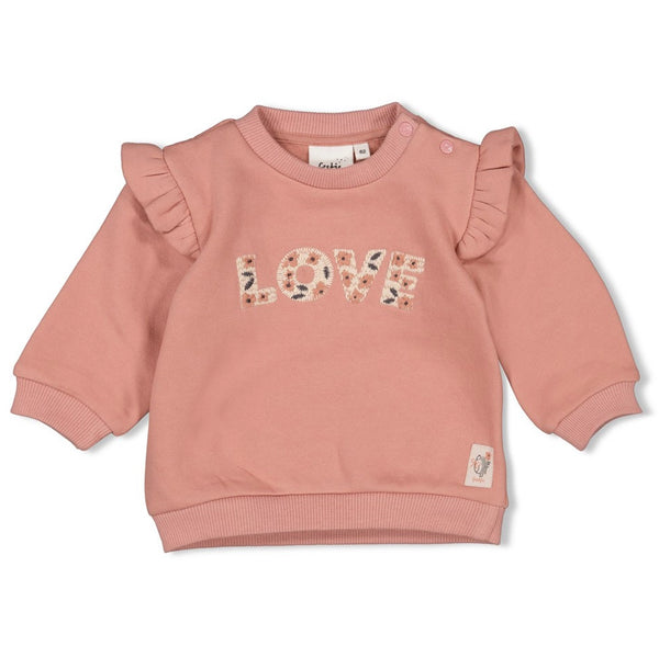 Cute en zacht! Dat is de meisjes sweater van feetje uit de nieuwe collectie Woodland Bloom . Deze sweater met love print is gemaakt van zacht katoen, ideaal voor jouw kleintje. Combineer met een feetje broekje voor een complete outfit. Verkrijgbaar vanaf maatje 62 tem 86.