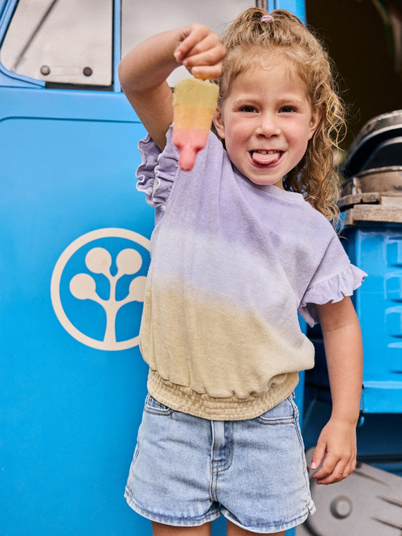 Daily7 meisjes T-shirt lila met oker geel streepje