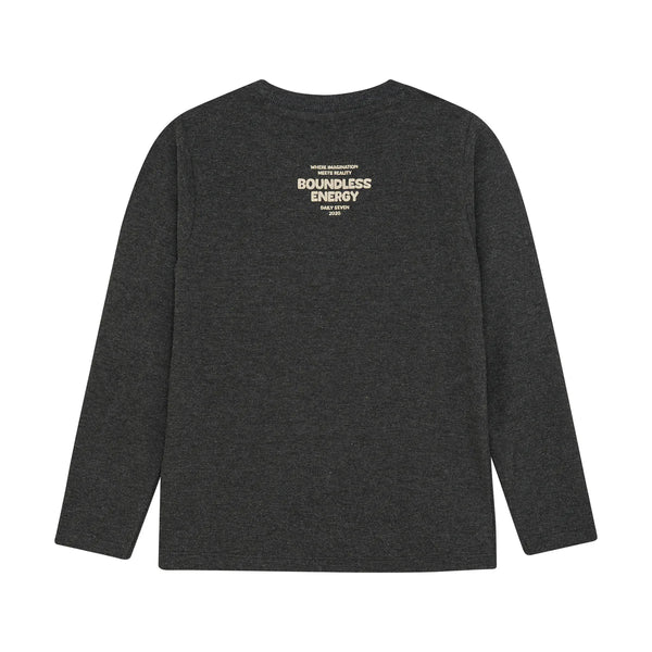 Hoe stoer is deze long sleeve van Daily seven? Deze jongens t-shirt in de donkergrijze kleur heeft een kleine print aan de voorzijde en achteraan een kleine tekst. Een basic met een speels accent .