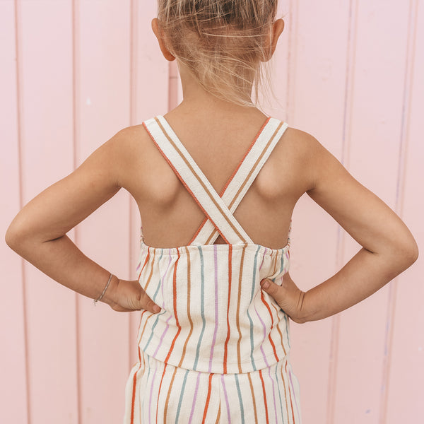 Deze sunset stripe top van your wishes is soepel en voelt heel erg zacht aan. De top is een leuk setje met de bijpassende sunset stripe short. Verkrijgbaar van 1 tem 8 Jaar.
