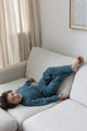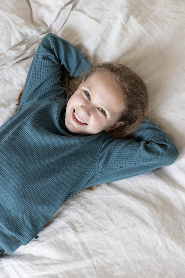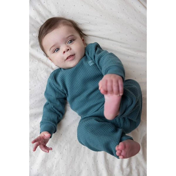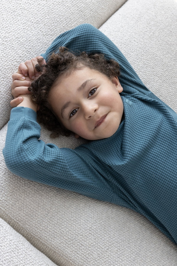 De Feetje wafelpyjama in petrolblauw is een comfortabele en stijlvolle keuze voor de winter. De pyjama is gemaakt van een zachte wafelstof die warmte biedt en tegelijkertijd ademend is. Het petrolblauwe kleurenschema zorgt voor een moderne en tijdloze uitstraling, geschikt voor zowel jongens als meisjes. Beschikbaar in maten van 80 tot en met 128 is de pyjama perfect voor kleintjes tot oudere kinderen. Het ontwerp heeft een klassieke pasvorm met lange mouwen en een elastische tailleband voor extra draagcomfort.