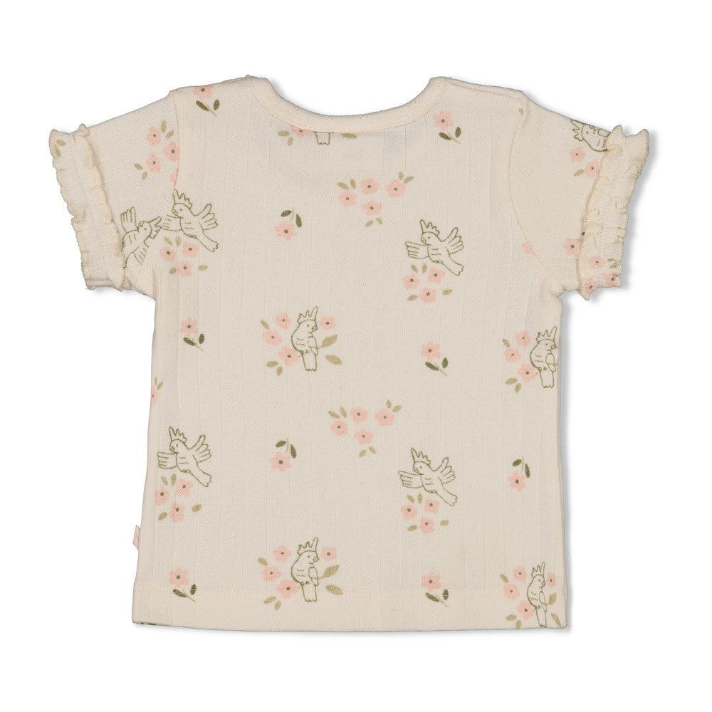 Cute en zacht! Dat is deze pointelle t-shirt van feetje uit de nieuwe collectie Let your Dream Blossom . Deze t-shirt is gemaakt van zacht katoen en heeft fijne print. Heel erg leuk te combineren met de groene short of de bijpassende short uit dezelfde collectie voor een mooi geheel . ideaal voor jouw kleintje. Verkrijgbaar vanaf maat 56 tem 86.