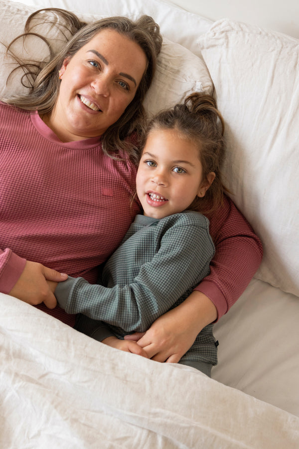 De limited wafel pyjama's van feetje zijn er weer . Nu verkrijgbaar in de kleur zeegroen & berry en ook voor ouders . De pyjama's zijn limited dus OP = OP . Ondertussen Kent iedereen de pyjama's van feetje wel en hebben ze een aangename pasvorm en zijn ze gemaakt van topkwaliteit .