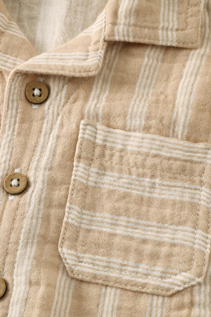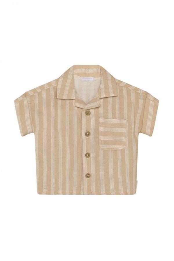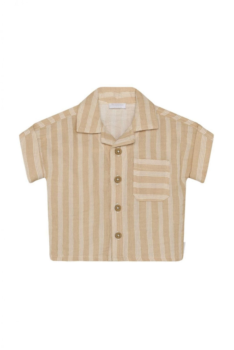Klassiek, luchtig en comfortabel: dit gestreepte shirt van Noppies Baby is een zomerse must-have. Het shirt is gemaakt van double cloth 100% biologisch mousseline katoen – een lichtgewicht, ademende stof die heerlijk zacht aanvoelt op de huid. De subtiele strepen en de klassieke reverskraag geven het shirt een stijlvolle uitstraling. Perfect voor feestelijke momenten, maar ook gewoon fijn voor elke dag. Dankzij de knoopsluiting aan de voorkant trek je het shirt makkelijk aan en uit. De korte mouwen zorgen voor extra draagcomfort tijdens warme dagen. De rechte pasvorm biedt bewegingsvrijheid zodat je kindje lekker kan kruipen, spelen en ontdekken. Een zomers shirt dat stijl en comfort moeiteloos combineert. Leuk met een shortje of luchtige broek uit de collectie.