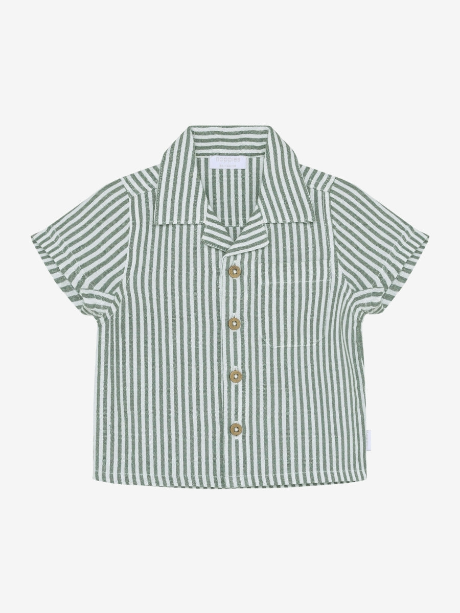 Dit Noppies babyshirt is een luchtige en stijlvolle keuze voor warme dagen. Gemaakt van ademend geweven katoen met een klassiek streepjespatroon, houdt het je kleintje koel en comfortabel. Het shirt heeft een reverskraag en knoopsluiting voor een nette look, terwijl de korte mouwen extra ventilatie bieden – perfect voor zowel casual als speciale gelegenheden. Dankzij het tijdloze ontwerp is het gemakkelijk te combineren met verschillende broeken of shorts. Een veelzijdig en stijlvol item voor de zomergarderobe van je baby. Of je nu naar buiten gaat of thuisblijft, dit shirt combineert comfort en elegantie. Verkrijgbaar vanaf maatje 62 tem 92