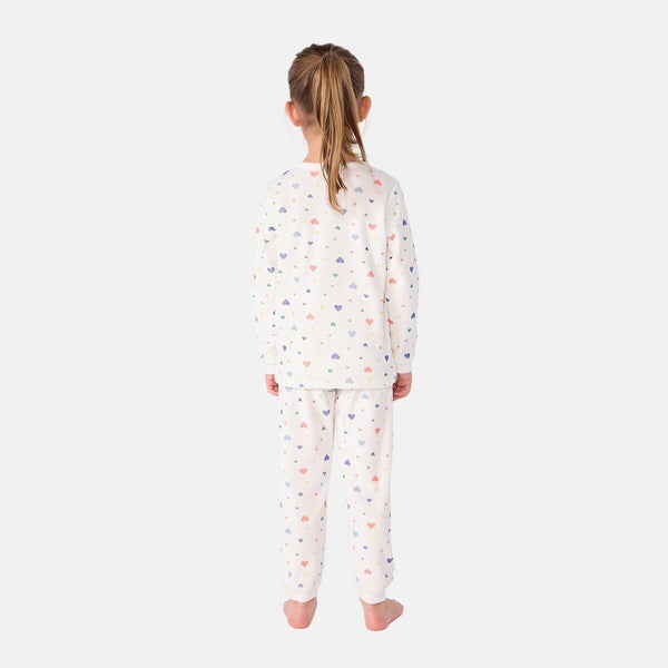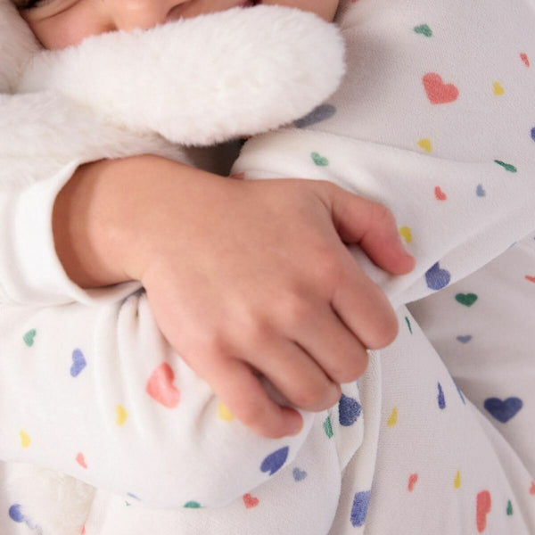 - Pyjama van zacht velours met meerkleurige hartjesprint, voor een vleugje fantasie!