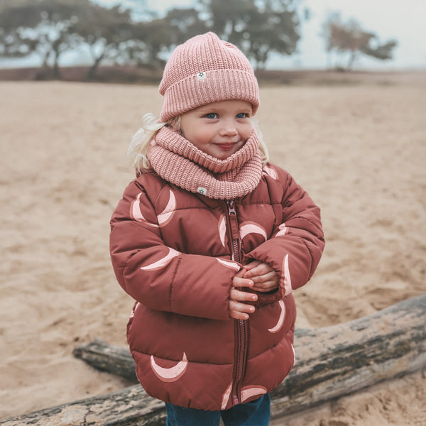 Laat jouw kleintje warm en stijlvol de winter door met deze schattige puffer jas van Your Wishes. De winterjas heeft een unieke maanprint die elke outfit een speels accent geeft. De jas is gewatteerd voor extra warmte, heeft een comfortabele kap en een stevige ritssluiting. Perfect voor de koude dagen in het bos, op het strand of onderweg naar school!